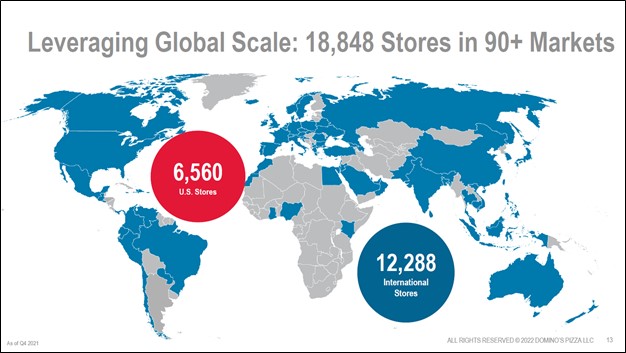 Image Shown: Domino’s sees room for thousands of additional store locations in markets across the globe. Image Source: Domino’s – Fourth Quarter of Fiscal 2021 IR Earnings Presentation