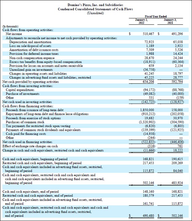 Image Shown: Domino’s has a high-quality cash flow profile. Image Source: Domino’s – Fourth Quarter of Fiscal 2021 Earnings Press Release