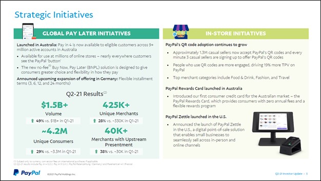 Image Shown: A look at the performance of PayPal’s BNPL business during the second quarter of 2021 along with an update on some of its other initiatives. Image Source: PayPal – Second Quarter of 2021 IR Earnings Presentation