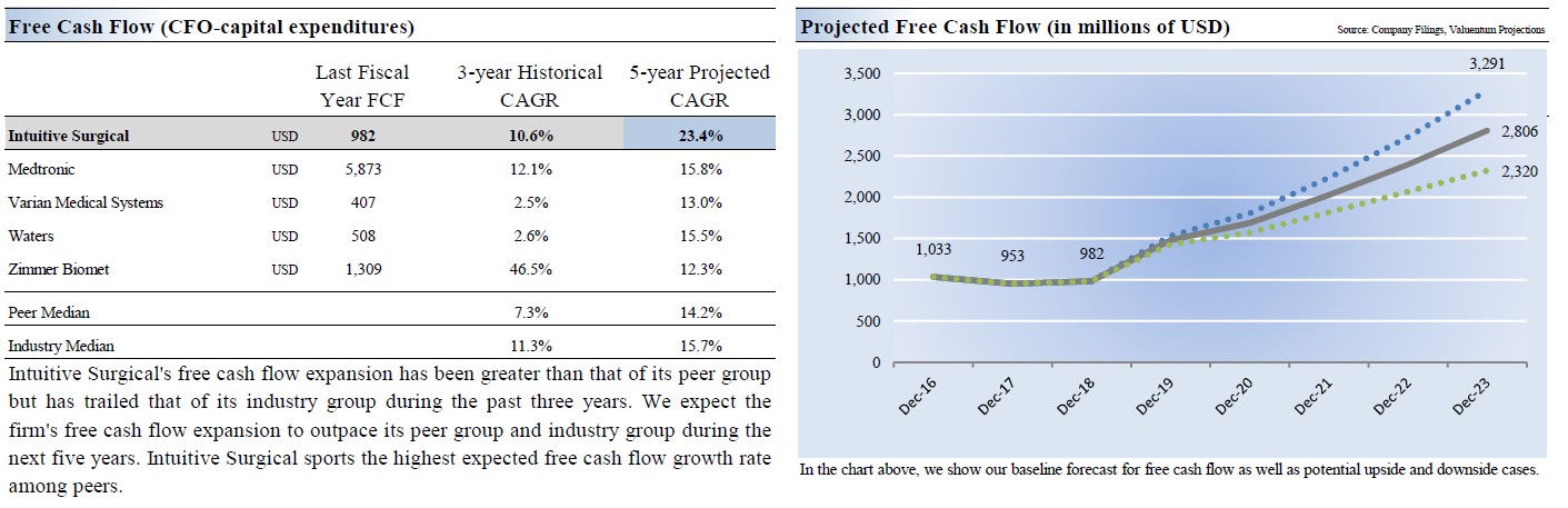 Image Shown: Intuitive Surgical’s business model allows for meaningful free cash flows, which we see as expanding significantly over the next five years. However, we caution that this upside is already fully reflected in Intuitive Surgical’s stock price.
