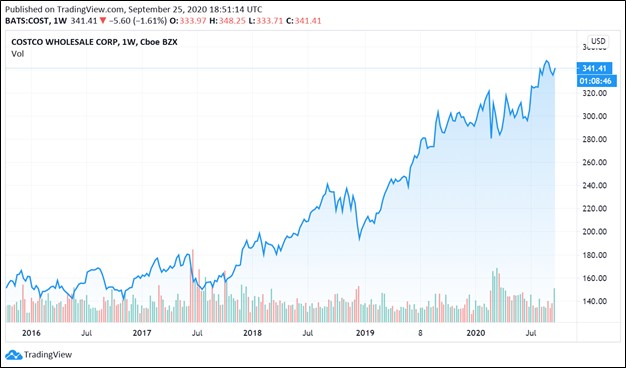 Image Shown: Shares of Costco Wholesale Corporation have been on an upswing over the past five years.