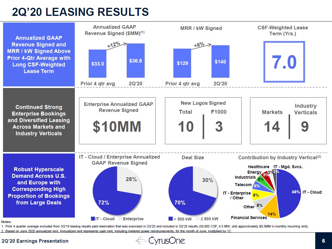 Image Shown: CyrusOne had plenty of success signing leases at favorable rates with large enterprises last quarter. Image Source: CyrusOne – Second Quarter of 2020 IR Earnings Presentation
