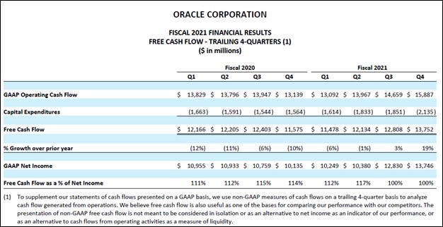 Image Shown: Oracle’s free cash flow conversion ratio is impressive and underpins why we are big fans of the company. Image Source: Oracle – 8-K SEC filing cover the fourth quarter of fiscal 2021