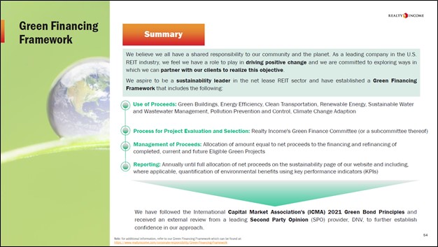 Image Shown: Realty Income recently issued its first green bond. Image Source: Realty Income – November 2021 IR Presentation