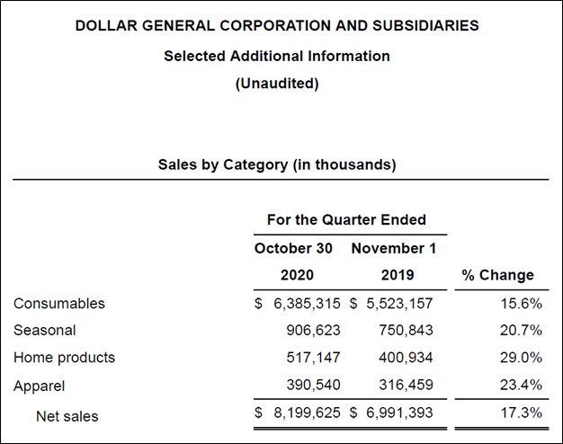 Image Shown: Dollar General reported strong sales growth across the board last fiscal quarter. Image Source: Dollar General – Third Quarter of Fiscal 2020 Earnings Press Release