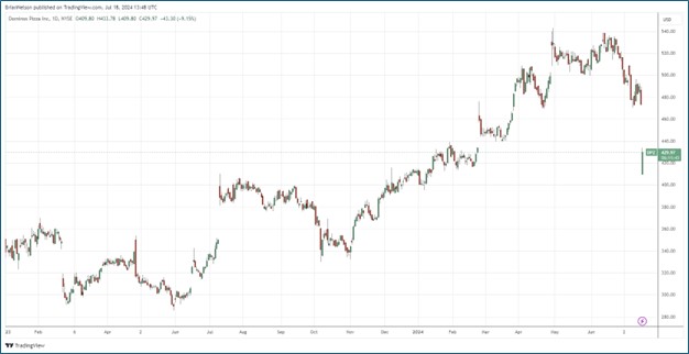 Domino’s quarterly results and free cash flow performance weren’t poor by any stretch, but the firm disappointed investors with respect to its updated global net store growth forecast. The company noted that it will come up 175-275 stores short of its international store growth target in 2024, and it temporarily suspended its guidance that previously called for 1,100+ global net stores annually over the period 2024-2028. It now expects 825-925 net new stores in 2024.