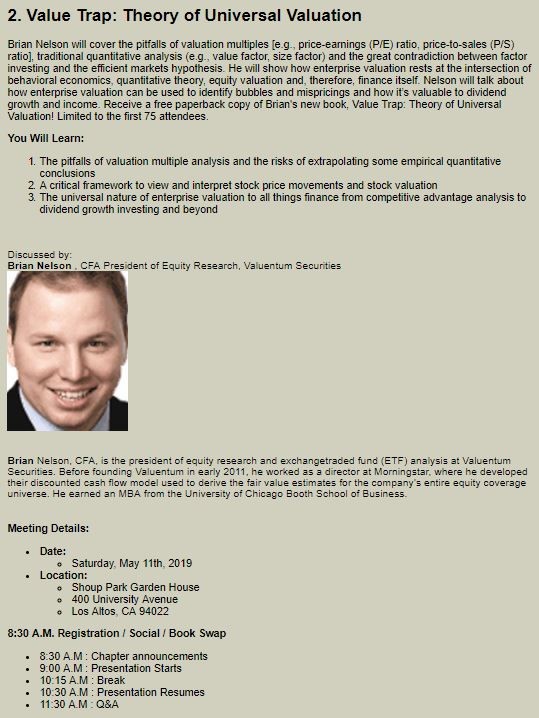 The book tour for Value Trap started Saturday April 13 in Chicago. Here is the tentative schedule for the remainder of 2019/2020. We’d be super excited to meet you if you’re in town. We’ll have more details about upcoming events as the year progresses. If you have any other suggested venues/cities, please just let me know! Let’s make it happen. Here’s what I have penciled in at the moment.