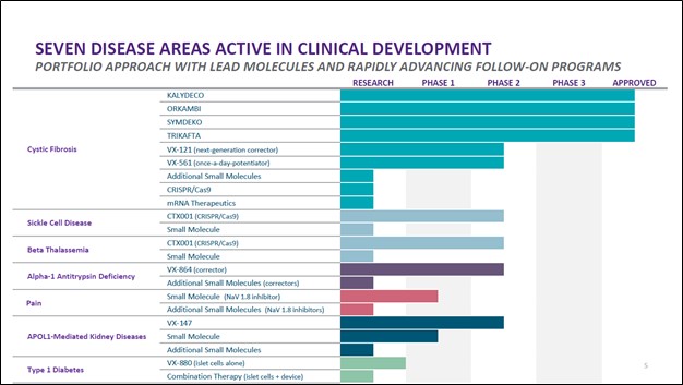 Image Shown: An overview of Vertex Pharmaceuticals Inc’s drug pipeline and commercialized drug portfolio. Image Source: Vertex Pharmaceuticals Inc – Fourth Quarter of 2020 IR Earnings Presentation