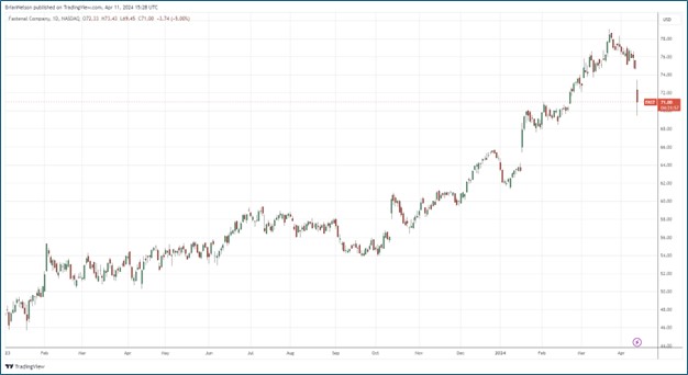 Image: Fastenal reported mixed first quarter 2024 results. We like its business model quite a bit.
