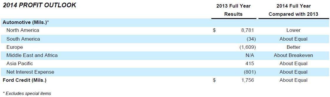 Looking ahead, Ford reiterated its outlook for 2014: