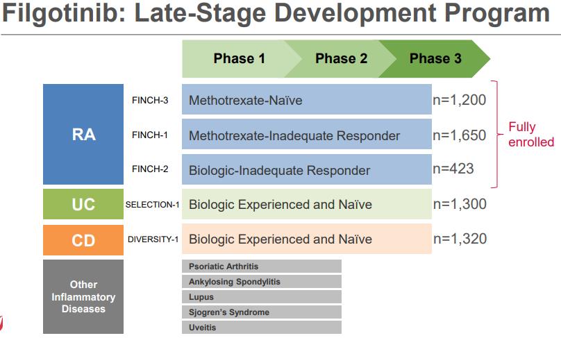 Filgotinib again demonstrated a lack of clotting, which has torpedoed other competing promising molecules.