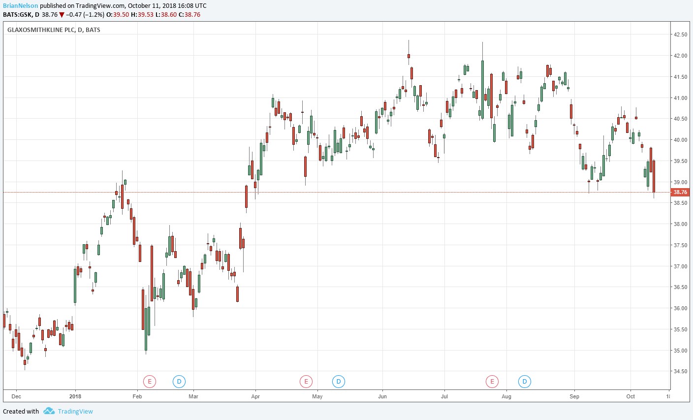 GSK remains at least in part dependent on sales of Advair to help drive earnings growth, however, as the Ellipta suite continues to grow, and fierce competition from AstraZeneca’s (AZN) Symbicort has led to a year-over-year sales drop of 24% at CER for Advair in the first six months of 2018. We view the pending introduction of a generic version of Advair as a “clearing event” for GSK as it may very well signify the onset of an earnings trough.