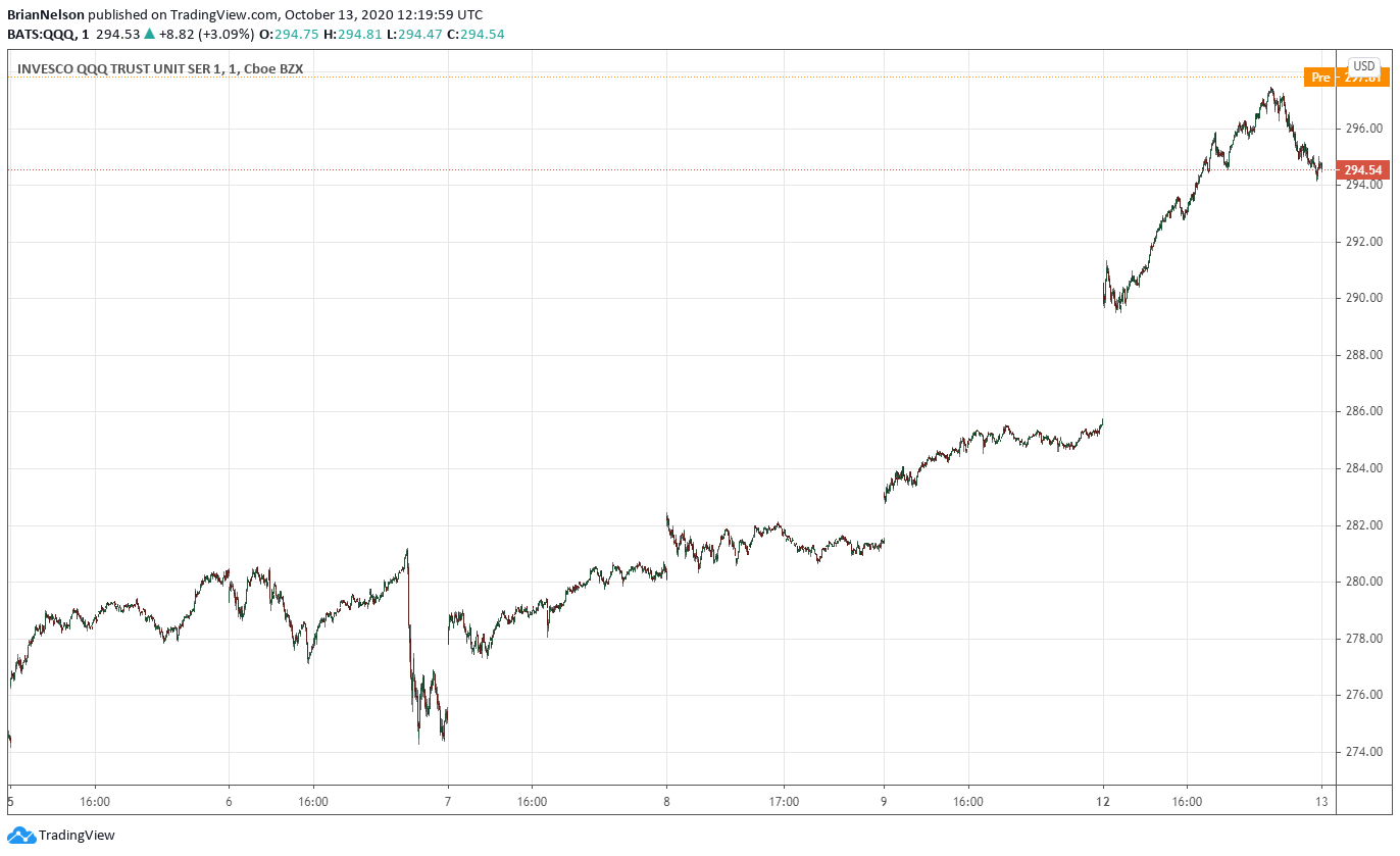 Image: The Invesco QQQ Trust, an exchange-traded fund based on the NASDAQ 100 index, had a great day during the trading session October 12, as it leads all major indexes on the year.