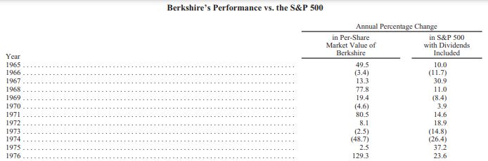 Image: An excerpt of Buffett’s returns at Berkshire Hathaway. Image Source: Berkshire Hathaway’s 10-K.