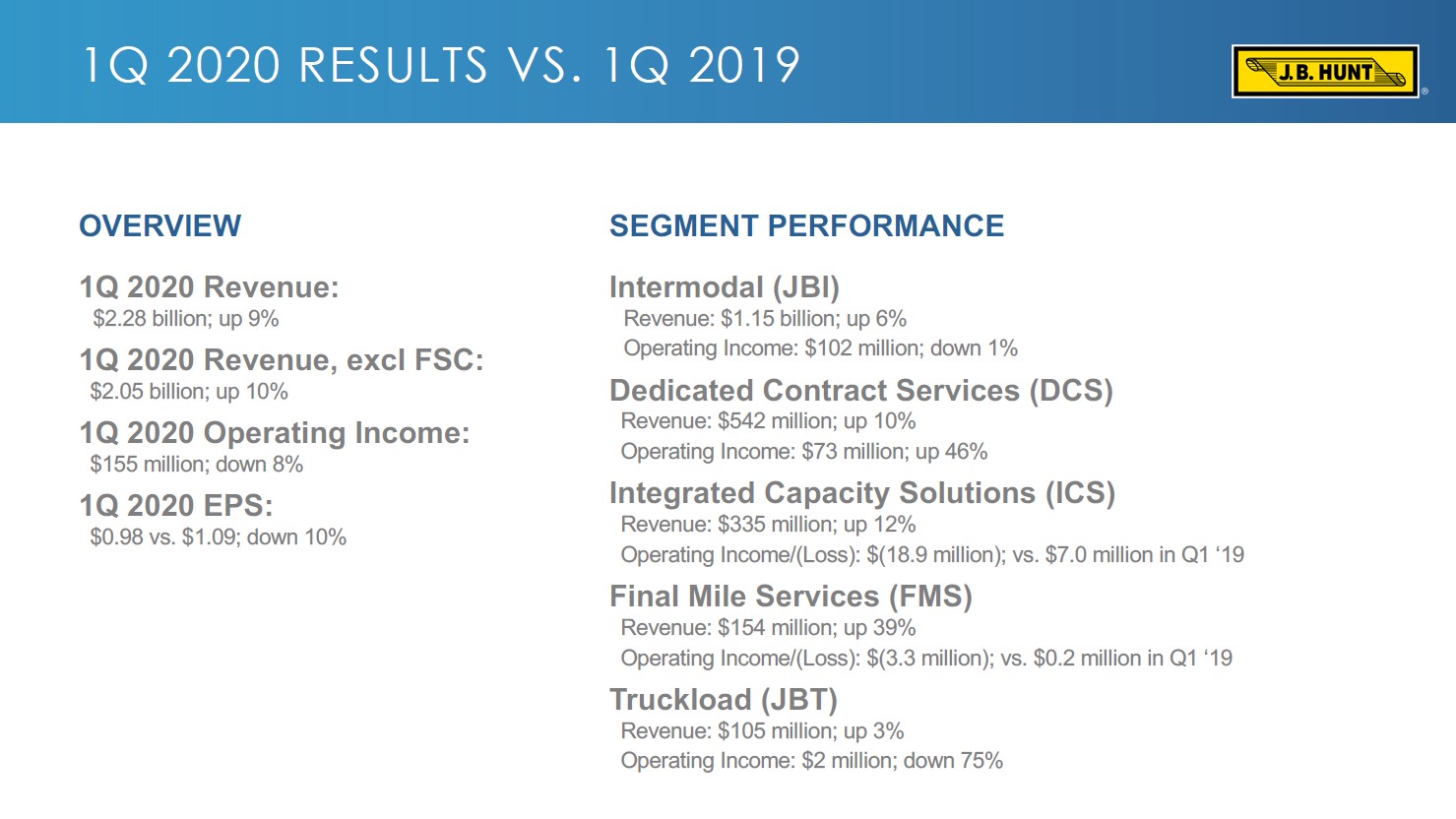 Image Source: JB Hunt Transportation Services Inc – First Quarter 2020 Earnings IR Presentation