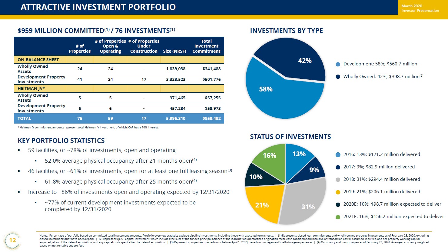 Image Shown: Jernigan Capital’s asset base is split between development loans for self-storage properties and wholly owned self-storage properties. Image Source: Jernigan Capital – March 2020 IR Presentation