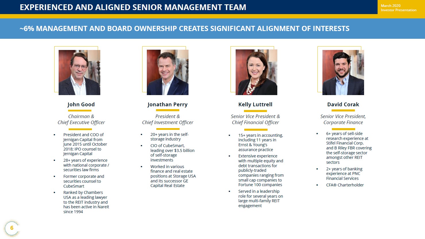 Becoming an internally managed REIT should better allow for Jernigan Capital to align its interests with shareholders, which we are supportive of. The REIT notes that ~6% of the company is owned by senior executives and the board of directors, which is another way Jernigan Capital is communicating to shareholders that their interests are aligned.