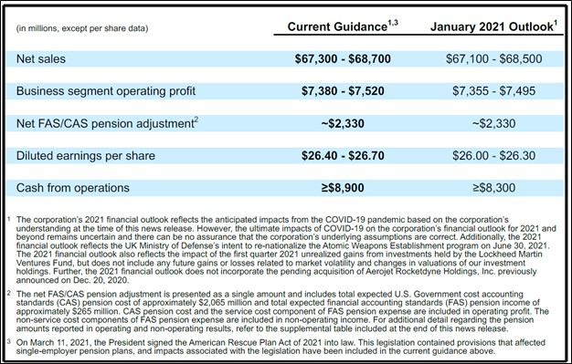 Image Shown: Lockheed Martin’s fiscal 2021 guidance received a nice boost during its latest earnings report. Image Source: Lockheed Martin – First Quarter of Fiscal 2021 Earnings Press Release