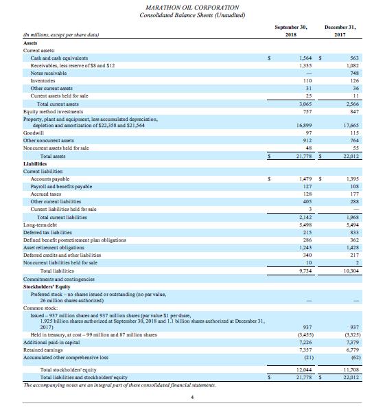 Image Source: Marathon Oil Corporation – third quarter 2018 10-Q