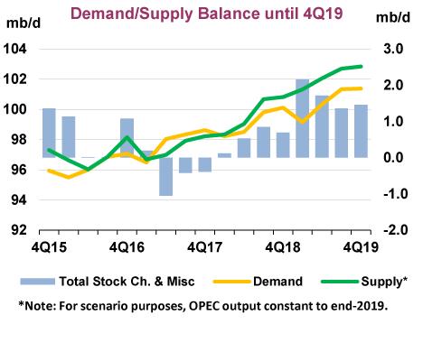 Alberta also announced that it was going to cut 325,000 bpd of production from the market during the first quarter of 2019, which will move down to just 95,000 bpd by the end of next year. The Canadian province is hoping that the expected drawdowns in Alberta’s oil inventories will reduce regional pricing differentials relative to WTI as the industry waits for a more permanent solution to the province’s takeaway problems (more pipeline takeaway capacity, additional regional refining capacity, and material increases in crude-by-rail takeaway capacity).