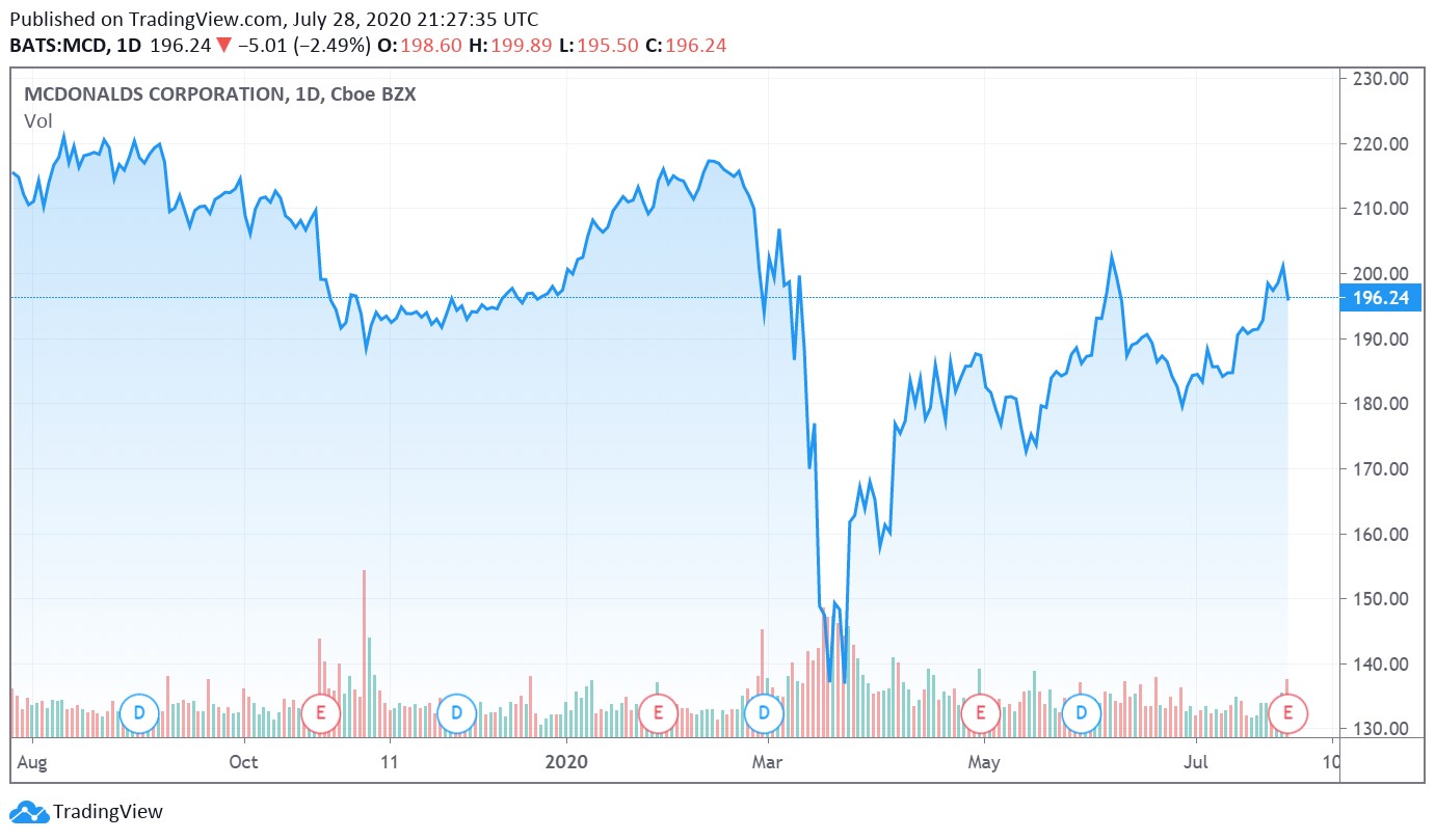 On July 28, McDonald’s Corporation (MCD) reported second quarter 2020 earnings that beat consensus top-line estimates but fell short of consensus bottom-line estimates. As expected, the ongoing coronavirus (‘COVID-19’) pandemic took a large bite out of its performance last quarter with global comparable sales down 23.9% versus the same period a year-ago. McDonald’s reported that its global comparable store sales trajectory improved throughout the second quarter as the decline shrank from -39.0% (negative 39.0%) in April 2020 to -12.3% (negative 12.3%) by June 2020. Shares of MCD sold off modestly during normal trading hours on July 28, and we caution that McDonald’s still appears to be generously valued as of this writing.