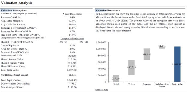 Before getting deeper into Microsoft’s latest quarterly report, take a look at our base case assumptions in the graphic below from our 16-page Stock Report (can be accessed here) covering the firm.