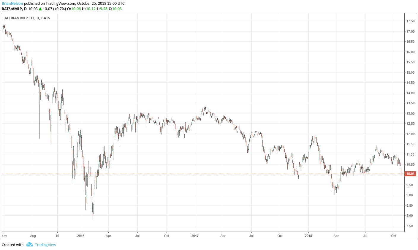 Image shown: The midstream MLP space continues to suffer. Performance of the group since mid-June 2015.