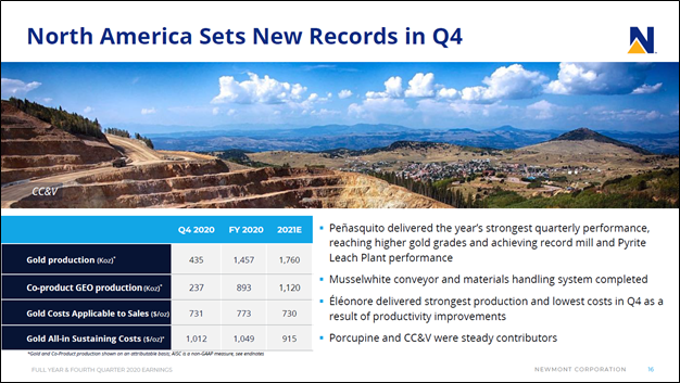 Image Shown: Newmont’s North American gold production outlook is supported by its Musselwhite mine returning to its full capacity. Management expects the cost structure of Newmont’s North American mining operations in the aggregate will improve in 2021 versus 2020 levels. Image Source: Newmont – Fourth Quarter of 2020 IR Earnings Presentation