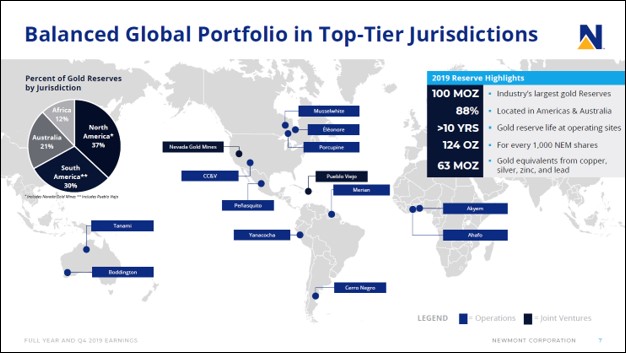Image Shown: A look at Newmont Corporation’s asset base, which is heavily centered on the Americas and Australia, with some exposure to West Africa as well. Image Source: Newmont – Fourth Quarter and Full-Year 2019 IR Earnings Presentation