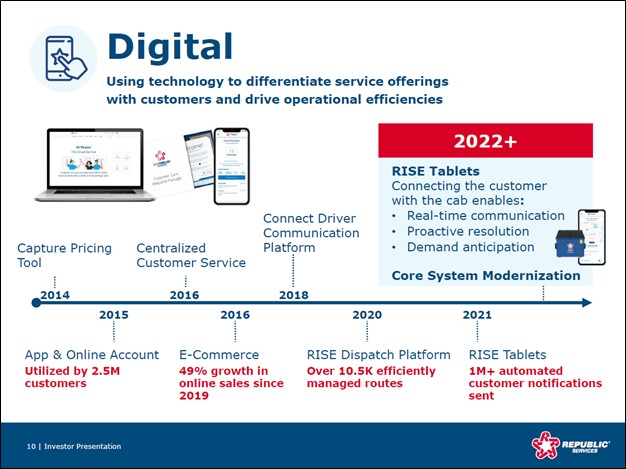 Image Shown: An overview of some of Republic Services’ digital initiatives. Image Source: Republic Services – March 2022 IR Presentation