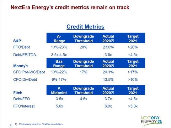 Image Shown: We appreciate NextEra Energy’s focus on preserving its balance sheet strength by keeping its leverage ratios in check. Image Source: NextEra Energy – Third Quarter of 2021 IR Earnings Presentation