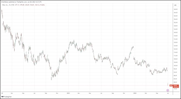 On June 27, Nike (NKE) reported disappointing fourth quarter fiscal 2024 results and issued an outlook for fiscal 2025 that came up short relative to expectations. Revenue in the quarter fell 2%, missing the consensus estimate, but was flat on a currency-neutral basis. Revenue for its Nike brand advanced 1% on a currency-neutral basis, while Nike direct revenue fell 7% on a currency-neutral basis. Wholesale revenue was up 8% on a currency-neutral basis, while revenues for Converse dropped 17% on a currency-neutral basis.