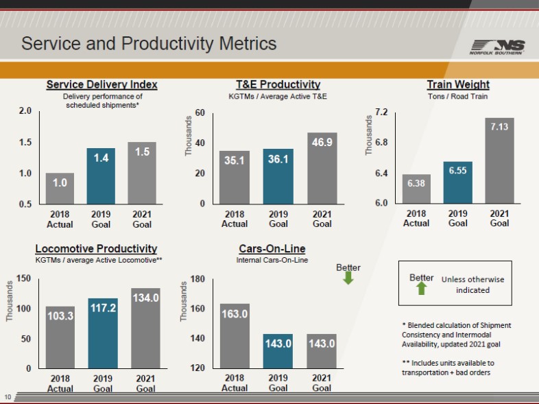 Image Shown: Norfolk Southern is seeking margin expansion through operational improvements on and off the railroad. Image Source: Norfolk Southern – First quarter 2019 IR presentation