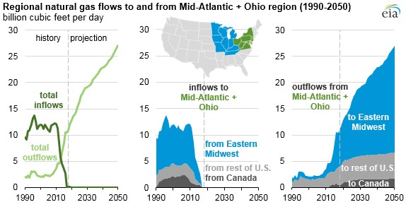 Image Shown: The United States Energy Information Administration notes that a flood of Appalachian-sourced natural gas is coming to key coal consuming regions in the Eastern Midwest. Image Source: U.S. EIA