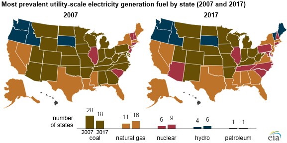 Image Shown: Natural gas is stealing market share away from coal as a fuel for electricity generation with an eye on the East Coast, Gulf Coast, and Midwestern markets. Image Source: U.S. EIA