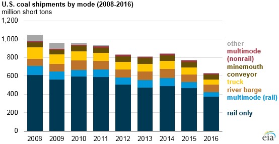 Image Shown: Coal shipments in America have been on the decline for some time. Image Source: U.S. EIA