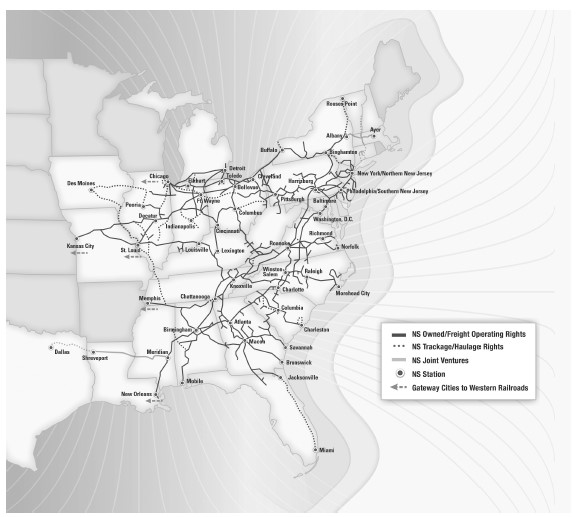 Keep in mind that this has an outsized influence on Norfolk Southern due to the company having a heavy presence in the aforementioned regions as you can see below: