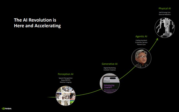 We’ve successfully ramped up the massive-scale production of Blackwell AI supercomputers, achieving billions of dollars in sales in its first quarter. AI is advancing at light speed as agentic AI and physical AI set the stage for the next wave of AI to revolutionize the largest industries.