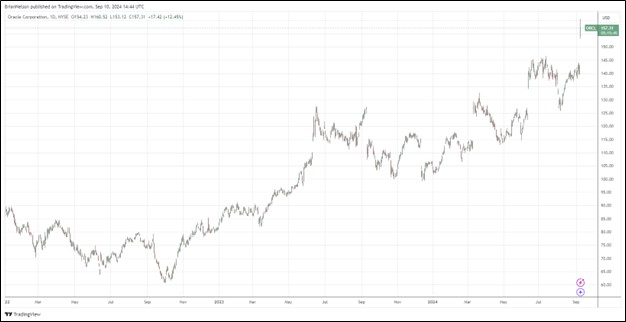 Oracle remains a key idea in both the Dividend Growth Newsletter portfolio as well as the ESG Newsletter portfolio, and its fiscal first quarter results support our bullish take on the name. Though Oracle has a rather large net debt position, free cash flow remains robust, while the company capitalizes on its total remaining performance obligations, which advanced 53% in the quarter on a year-over-year basis. We liked the commentary about revenue growth to accelerate throughout fiscal year 2025, and we point to the high end of our fair value estimate range ($178 per share) for shares.