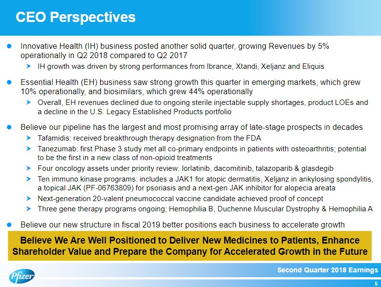 Quote Source: Pfizer Q2 2018 Earnings Conference Call