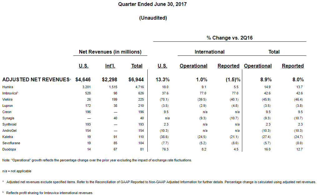 Humira remains the primary driver of profitable sales growth for AbbVie as the product retains the title of the most valuable pharmaceutical product on the planet. Humira sales continue to power higher, registering a staggering $4.7 billion in the second quarter of 2017. The fact that a mature product nearing the end of its patent protection cycle in such a highly lucrative yet fiercely competitive market can generate double-digit growth is a testament to the product’s unique staying power. AbbVie retains a commanding lead in inflammatory diseases, a market in which the company plans to rigorously defend its position in the coming years.