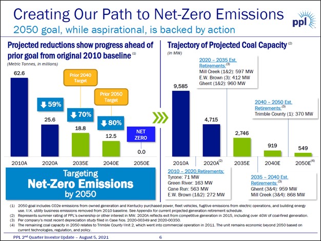 Image Shown: PPL Corp plans to steadily retire most of its coal-fired power plant fleet over the coming decades. Image Source: PPL Corp – Second Quarter of 2021 IR Earnings Presentation