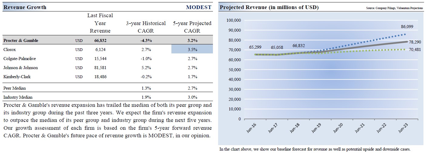 In the graphic below, from our 16-page Stock Report covering P&G (can be accessed here), we highlight our forecast assumptions for the company’s future financial performance under our base case scenario. To achieve an intrinsic value well north of $100 per share, an investor would have to believe P&G will grow its top-line consistently at rates well above what we view as reasonable over the medium- and long-term.