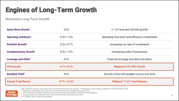Image Shown: Public Storage’s long-term financial growth and shareholder return targets. Image Source: Public Storage – May 2021 Investor Day Presentation