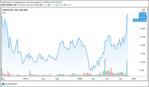 Shares of the audio streaming services and wireless home audio products company Sonos Inc (SONO) are starting to show signs of life after their poor showing in the quarters that followed its initial public offering back in August 2018. More recently, shares of SONO have started to surge higher after the firm reported fourth quarter and full year earnings for fiscal 2020 (period ended October 3, 2020) on November 18. The company smashed past consensus top- and bottom-line estimates, though most importantly, Sonos provided very promising guidance for fiscal 2021. First, let us go over how our view towards Sonos has changed over the past couple of years before digging into its improving outlook.