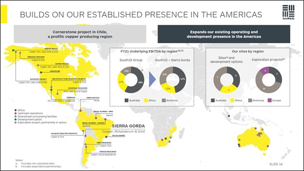 Image Shown: South32’s underlying profitability should improve by adding the Sierra Gorda mining operation to its asset base. Image Source: South32 – October 2021 Sierra Gorda Acquisition IR Presentation
