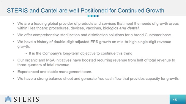 Image Shown: The growth outlook for Steris and Cantel Medical, as a combined entity, is bright according to Steris. Image Source: Steris – Steris Acquiring Cantel Medical IR Presentation