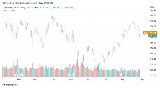 Image Shown: Shares of Apple Inc have rebounded strongly from their recent lows as of late August 2022.