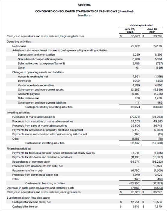 Image Shown: Apple is a free cash flow generating powerhouse. Image Source: Apple – Third Quarter of Fiscal 2022 Earnings Financial Statements