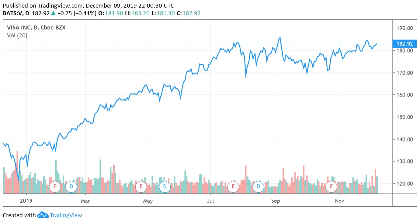 Image Shown: Shares of Visa Inc have shot upwards over the past year and we continue to like the name as a top holding in our Best Ideas Newsletter portfolio.